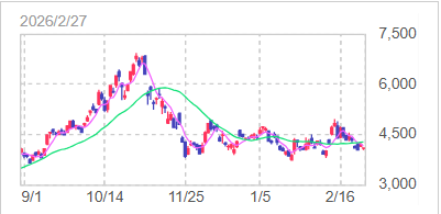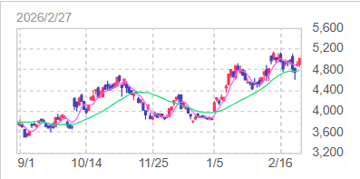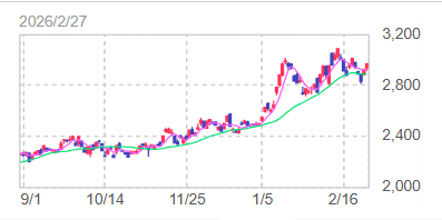 実際に 2023〜2026年にかけて株価は数倍に伸びた局面もあり、成長性の高さが見える動きをしています。