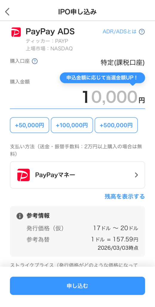 PayPay証券でIPO株の抽選申し込みが開始!とりあえず参加してみた